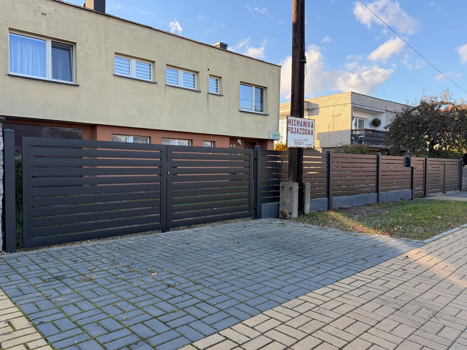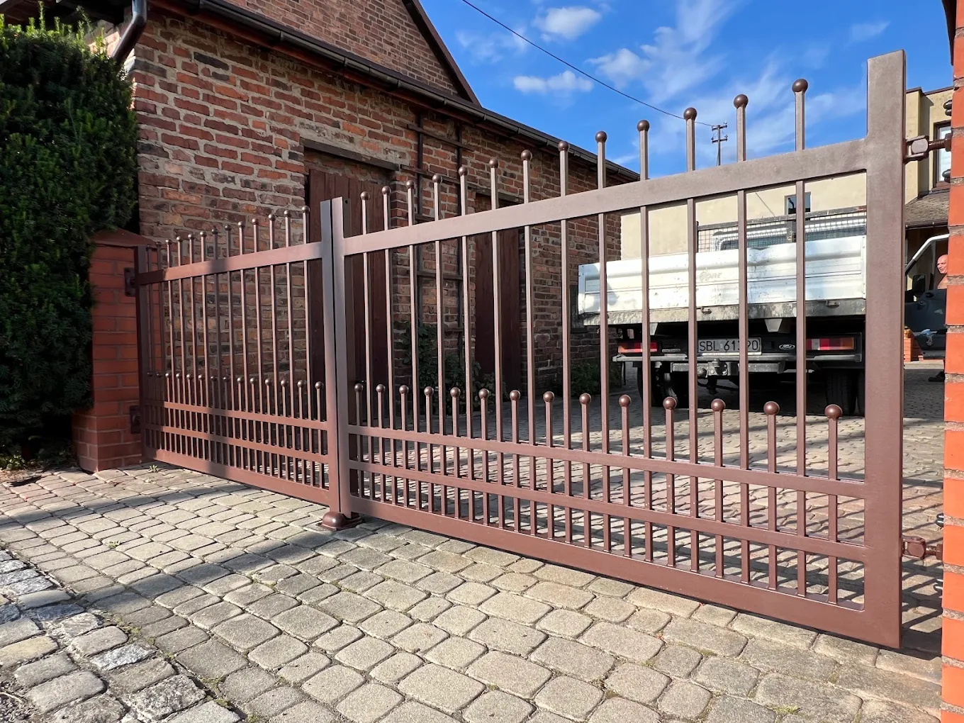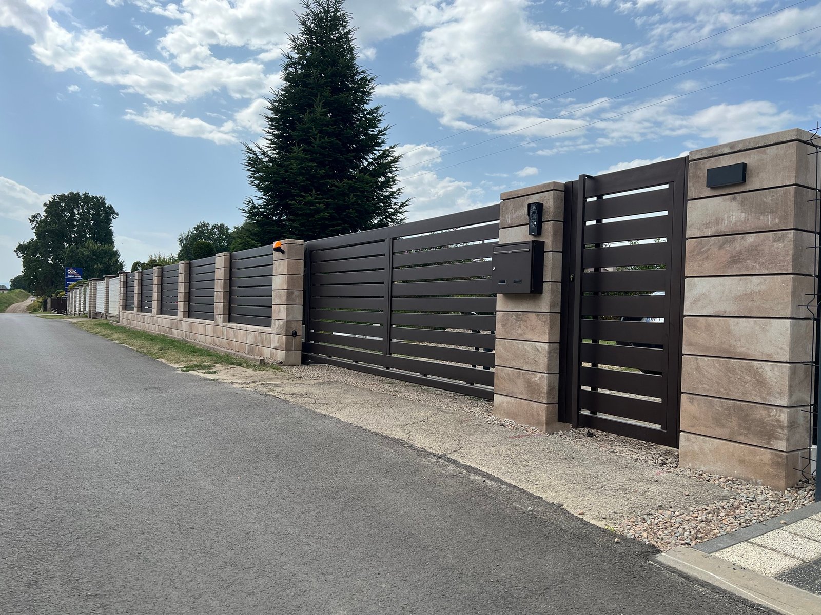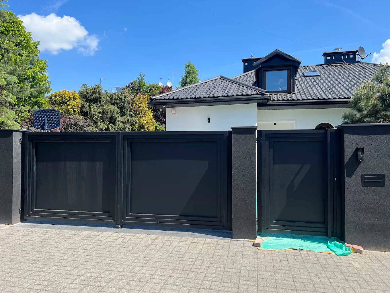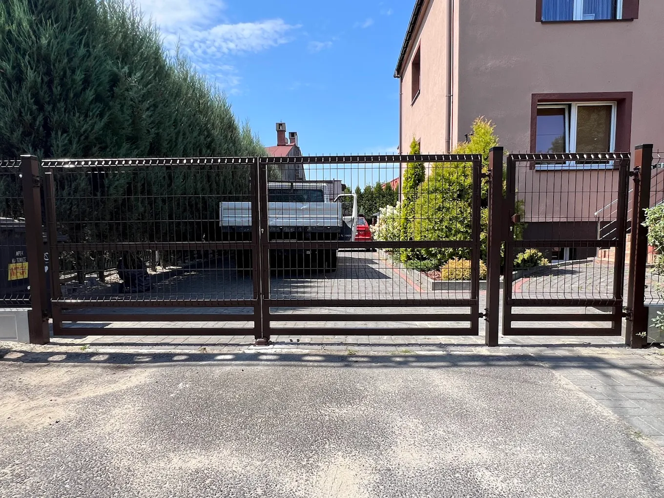 Realizacja ogrodzenia stalowego z przęsłami poziomymi oraz bramą przesuwną. Konstrukcja zabezpieczona antykorozyjnie, montaż wykonany na terenie inwestycji prywatnej.