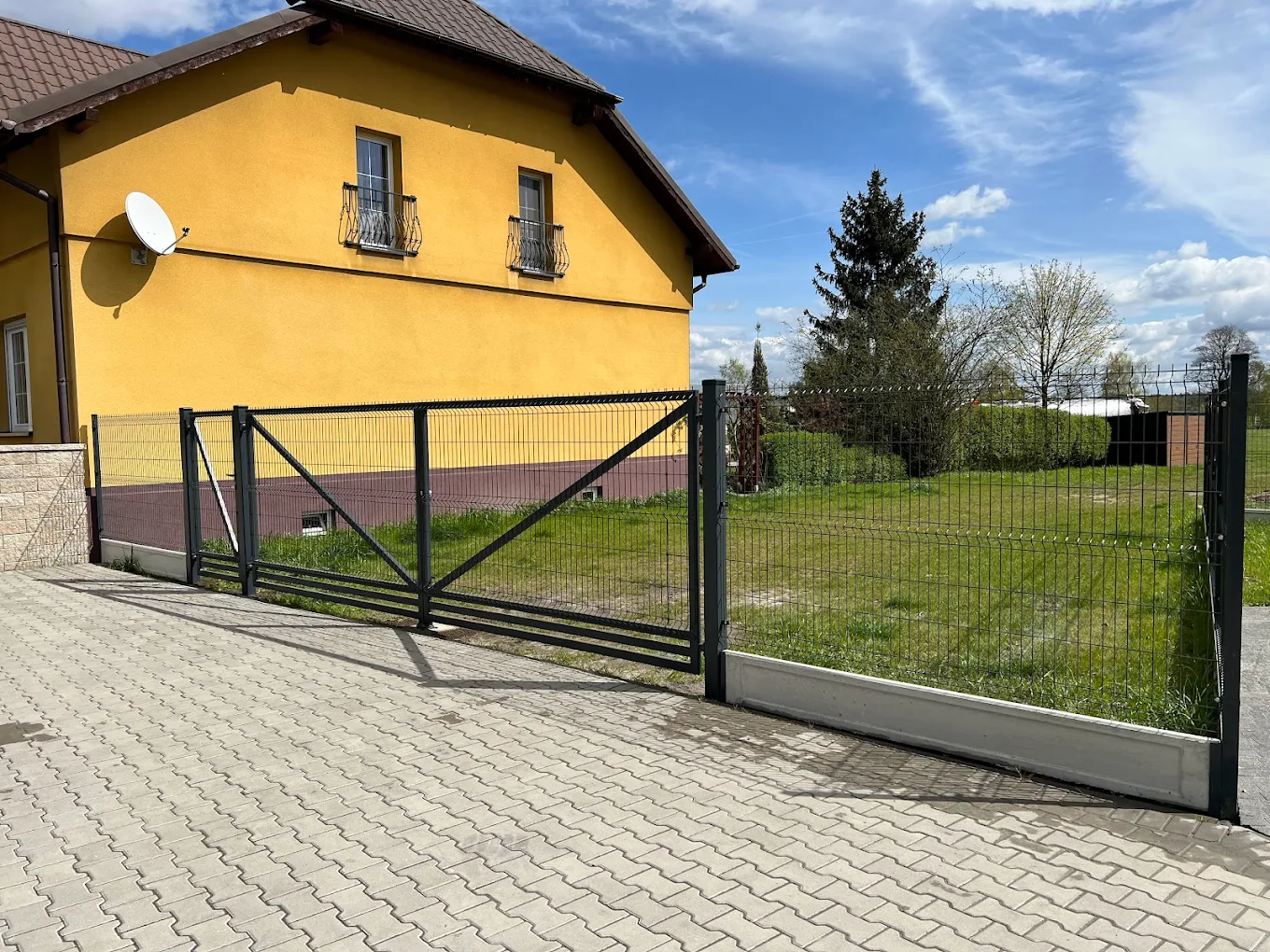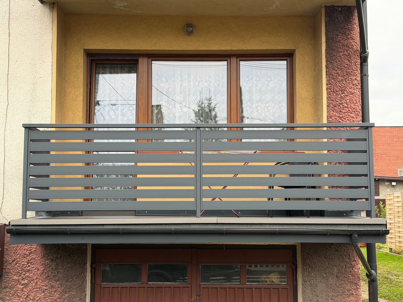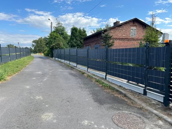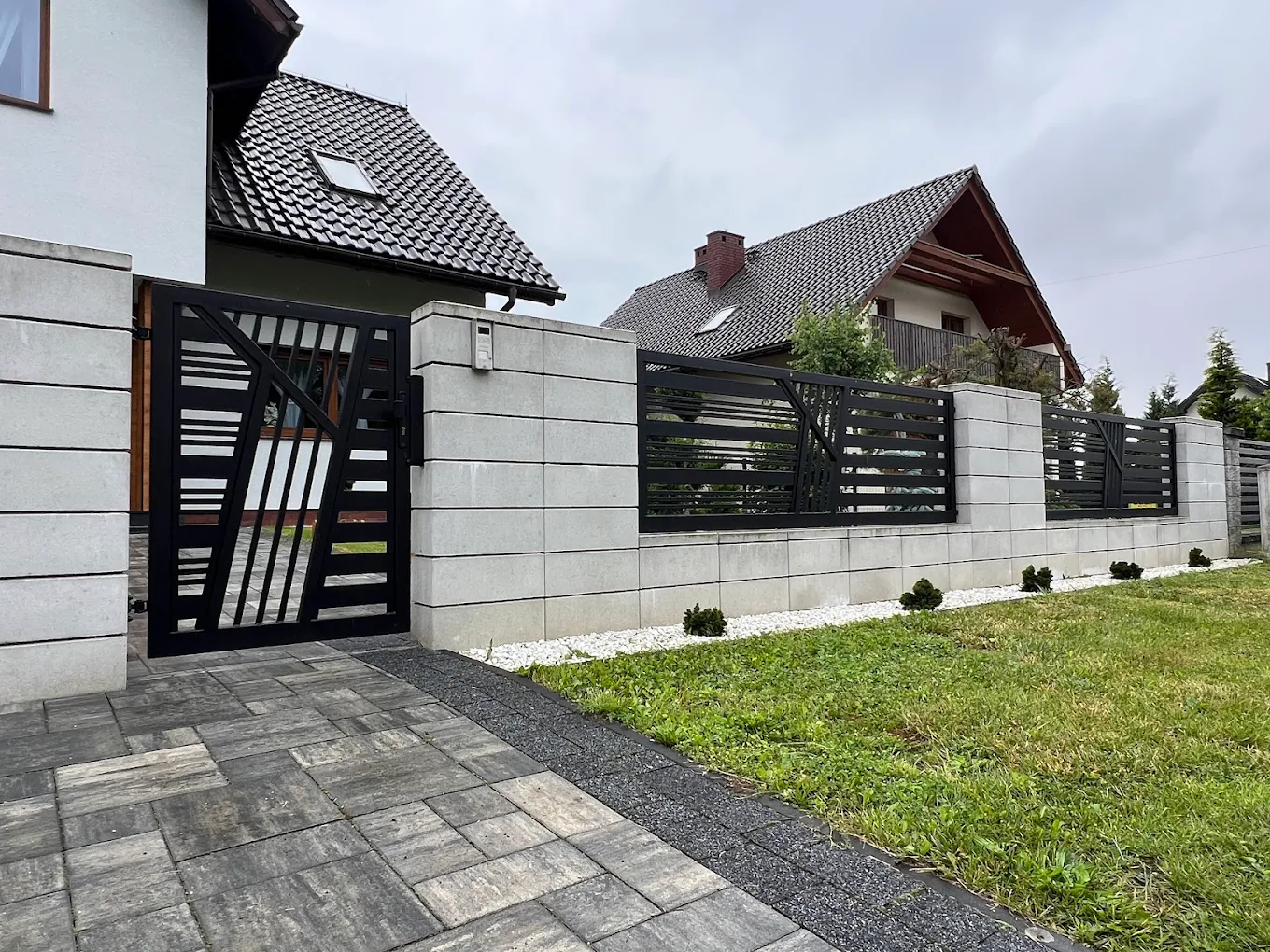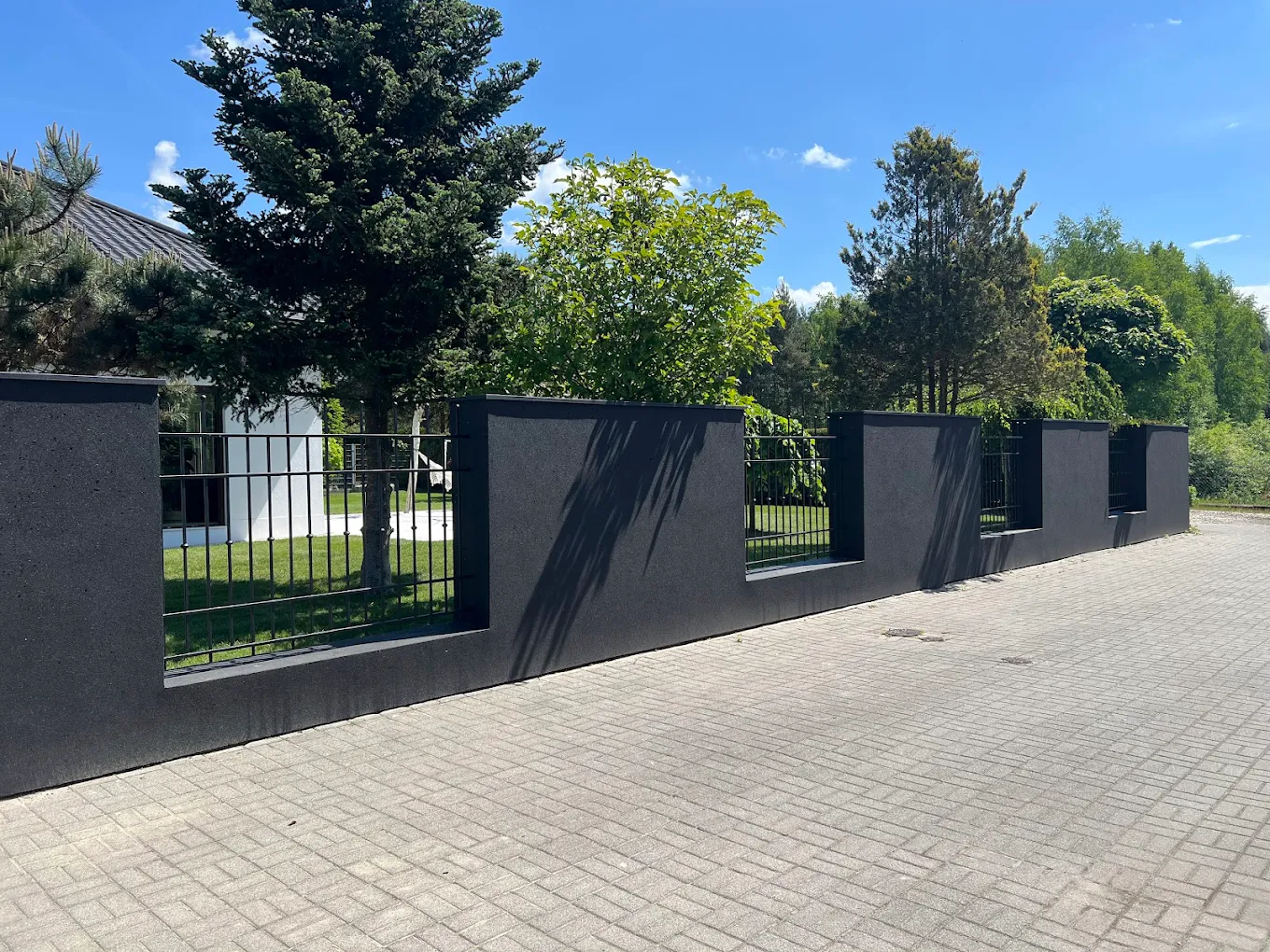Realizacja ogrodzenia stalowego z przęsłami poziomymi oraz bramą przesuwną. Konstrukcja zabezpieczona antykorozyjnie, montaż wykonany na terenie inwestycji prywatnej.